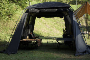 クロスポールの強度、シンメトリーの強度を併せ持つツールームテント。全方向フルメッシュで、シェルター仕様にも快適。同一4本のクロスポールが設営をシンプルにし、強度を確保しています。インナーテントは左右どちらにも取り付け可能。雨の日でも換気快適なベンチレーション付き。